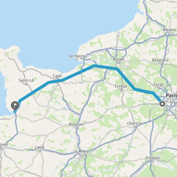 Prendre à droite et rejoindre A84 E401. Continuer sur 93 kilomètres