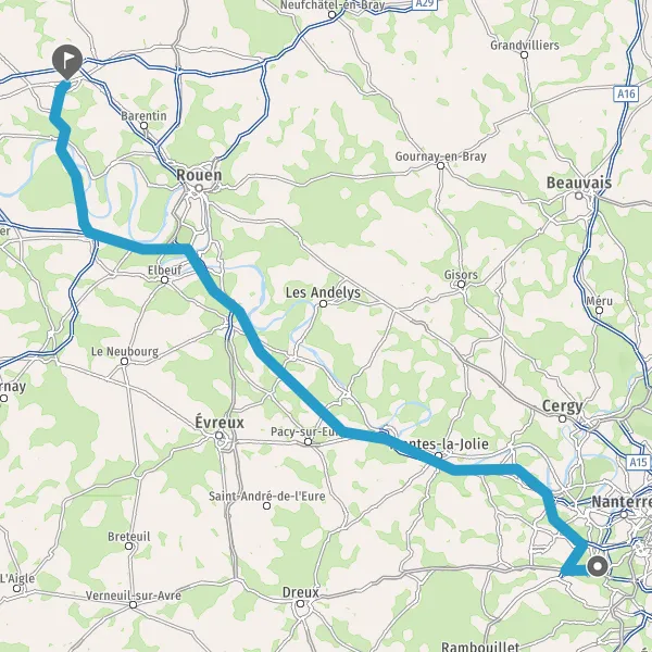 Tourner légèrement à droite sur Pont Gustave Flaubert et continuer sur 29 kilomètres