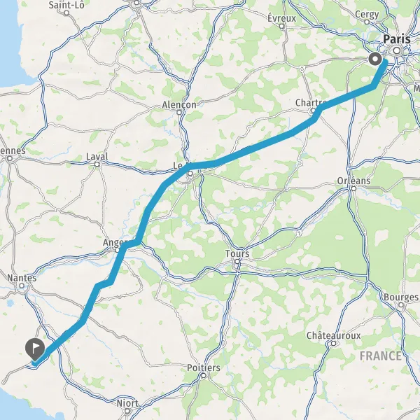 Prendre à droite et rejoindre A11 E50. Continuer sur 147 kilomètres