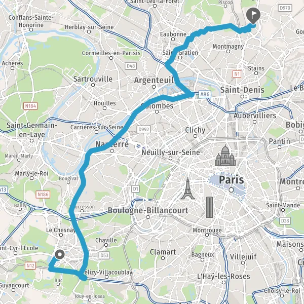 Sortir et rejoindre D170 (Boulevard Intercommunal du Parisis). Continuer sur 3 kilomètres