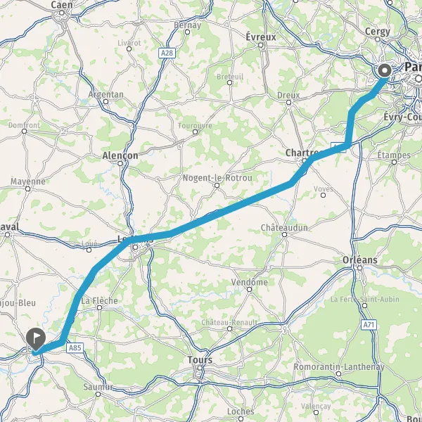 Prendre à droite et rejoindre A11 E50. Continuer sur 142 kilomètres