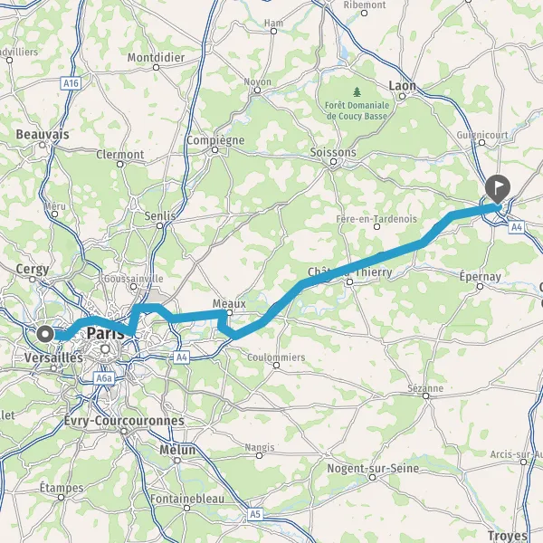 Prendre à droite et rejoindre A4 E50. Continuer sur 13 kilomètres