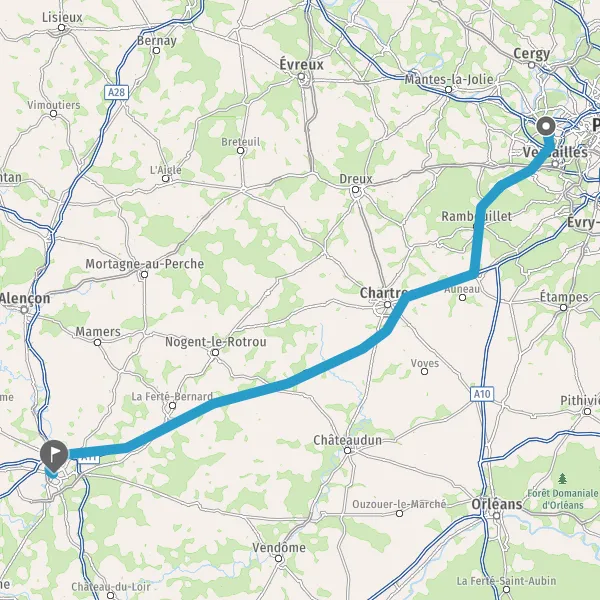 Prendre à droite et rejoindre N10 (Route de Chartres). Continuer sur 32 kilomètres