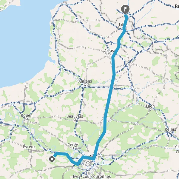 Continuer E19 (Autoroute du Nord) sur 124 kilomètres