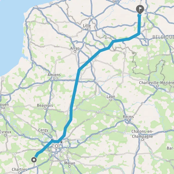Continuer E19 (Autoroute du Nord) sur 124 kilomètres