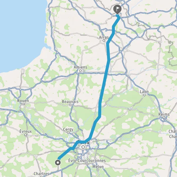 Continuer E19 (Autoroute du Nord) sur 124 kilomètres