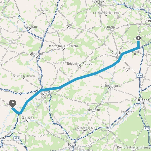 Prendre à droite et rejoindre A11 E50. Continuer sur 142 kilomètres