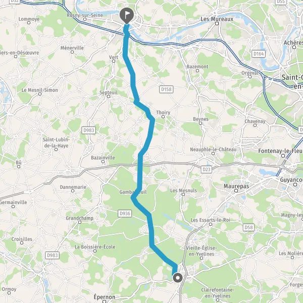 Au rond-point, prendre la 2ème sortie sur D936 (Rue de Groussay) et continuer sur 9,4 kilomètres