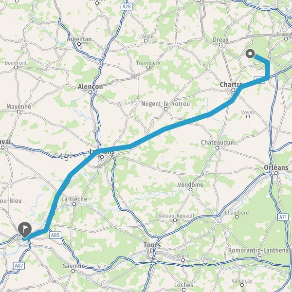 Prendre à droite et rejoindre A11 E50. Continuer sur 142 kilomètres
