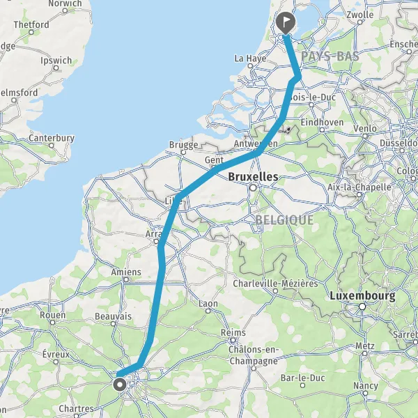 Continuer E19 (Autoroute du Nord) sur 124 kilomètres