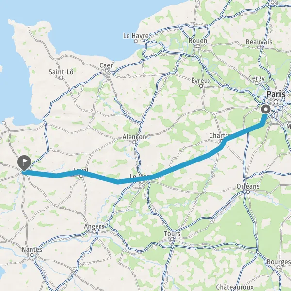 Prendre à droite et rejoindre A11 E50. Continuer sur 147 kilomètres