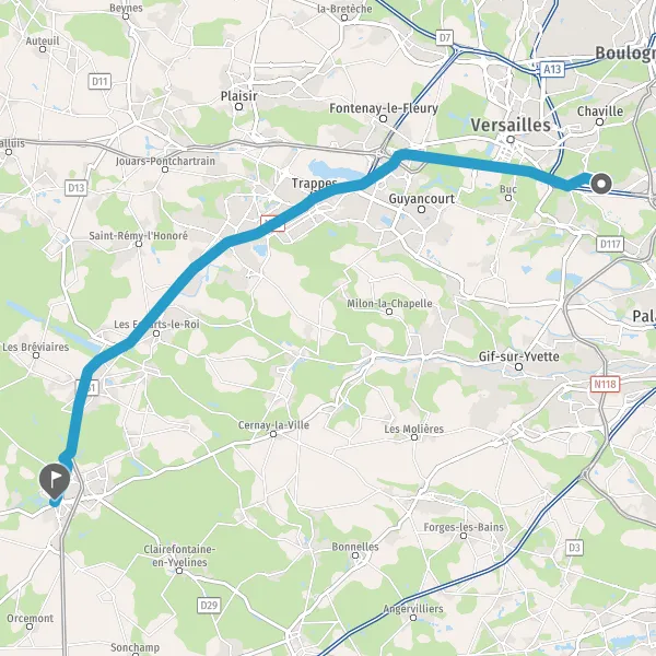 Sortir et rejoindre 5 Saint-Cyr-L'École. Continuer sur 850 mètres