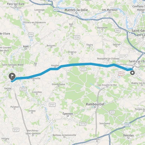 Sortir et rejoindre D912 (Route de Dreux). Continuer sur 1,2 kilomètre