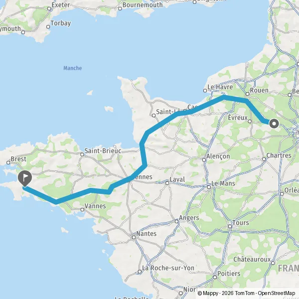 Prendre à droite et rejoindre A84 E401. Continuer sur 165 kilomètres