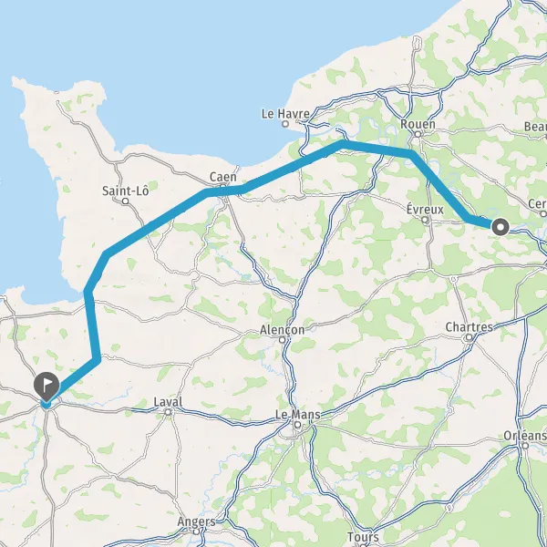 Prendre à droite et rejoindre A84 E401. Continuer sur 165 kilomètres
