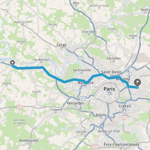 A13EpôneMézières-sur-SeineLes MureauxMeulan-en-YvelinesParisRambouillet