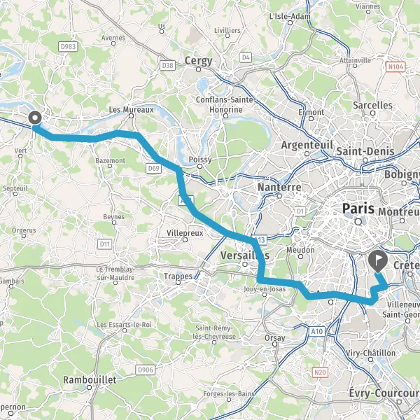 A13EpôneMézières-sur-SeineLes MureauxMeulan-en-YvelinesParisRambouillet