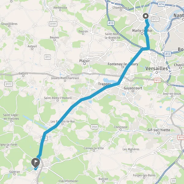 Prendre à droite et rejoindre N13 (Avenue de Saint-Germain). Continuer sur 270 mètres
