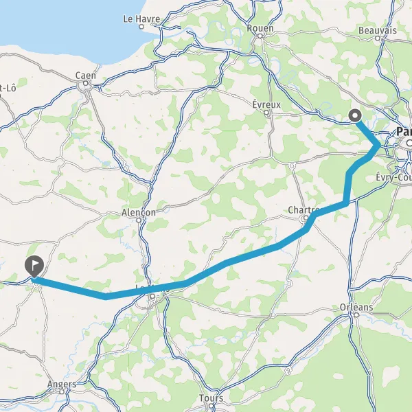 Prendre à droite et rejoindre A11 E50. Continuer sur 142 kilomètres