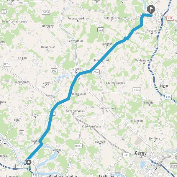 Au rond-point, prendre la 2ème sortie sur D981 (Rue de Gisors) et continuer sur 2,8 kilomètres
