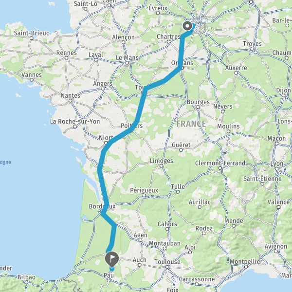 Prendre à droite et rejoindre A65. Continuer sur 117 kilomètres