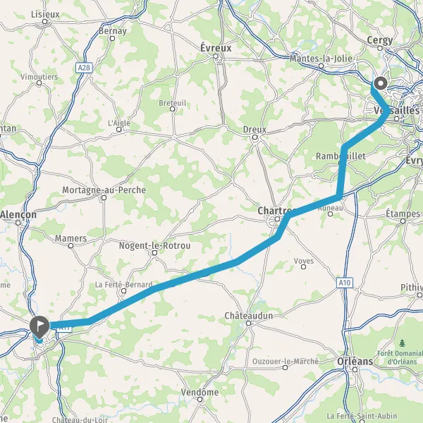 Prendre à droite et rejoindre A11 E50. Continuer sur 138 kilomètres