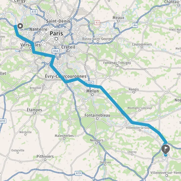 Prendre à gauche et rejoindre N104 (La Francilienne). Continuer sur 8,2 kilomètres