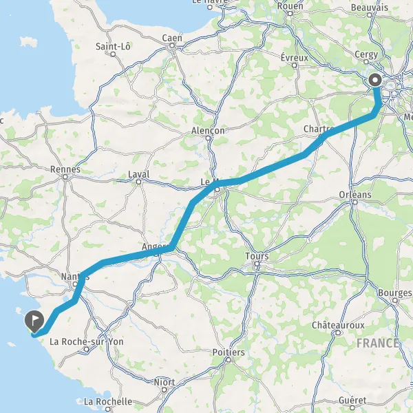 Continuer E501 (L'Océane) sur 165 kilomètres
