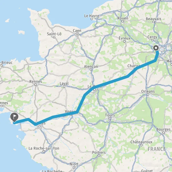 Continuer E501 (L'Océane) sur 165 kilomètres