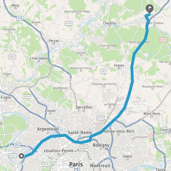 Prendre à droite et rejoindre D16 (Rue de Paris). Continuer sur 350 mètres