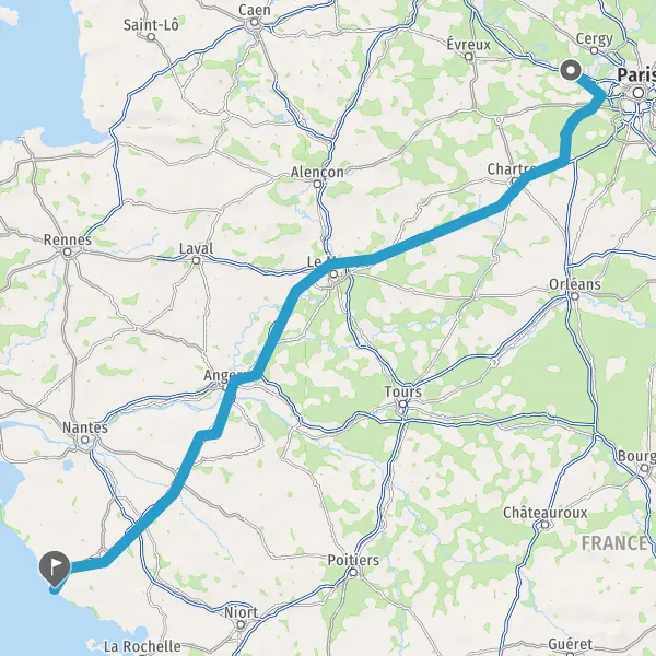 Continuer E501 (L'Océane) sur 84 kilomètres