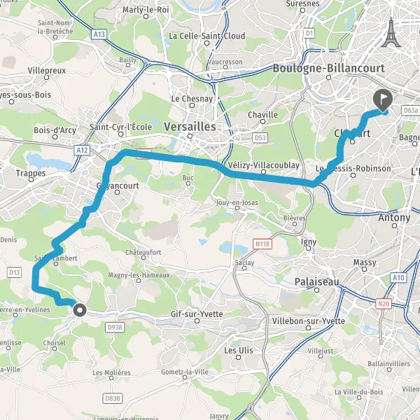Prendre à droite et rejoindre D906 (Route de Paris). Continuer sur 1 kilomètre