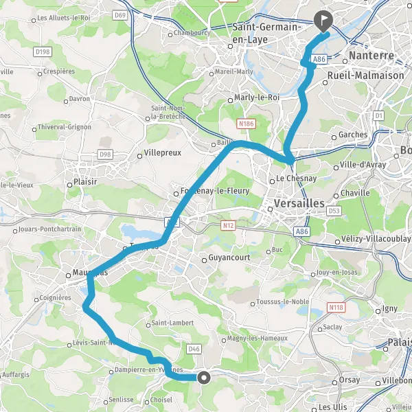 Tourner à droite sur Route de Châteaufort et continuer sur 1 kilomètre