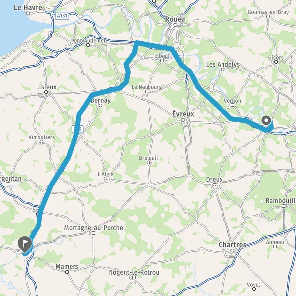 Continuer D113 (Route Nationale 13) sur 20 kilomètres