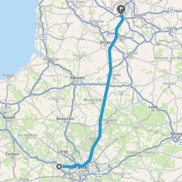 Continuer E19 (Autoroute du Nord) sur 124 kilomètres