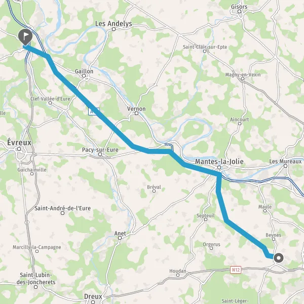 Prendre à droite et rejoindre A13 E5. Continuer sur 45 kilomètres