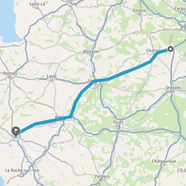 Prendre à droite et rejoindre A11 E50. Continuer sur 142 kilomètres