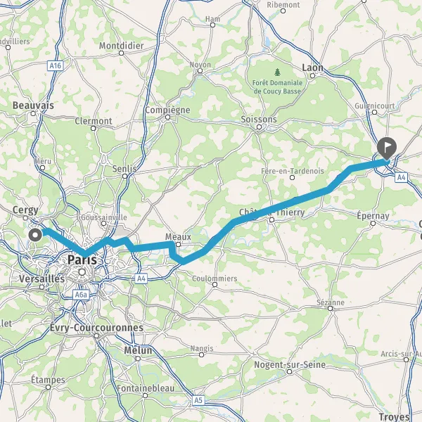 Prendre à droite et rejoindre A4 E50. Continuer sur 13 kilomètres