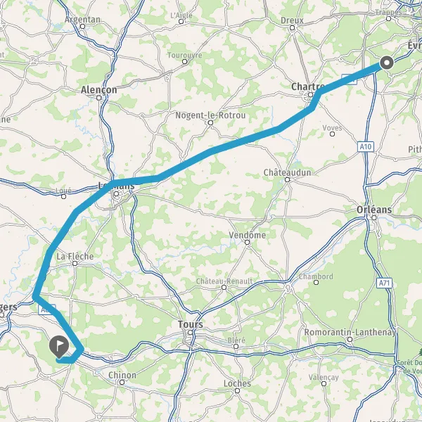 Prendre à droite et rejoindre A11 E50. Continuer sur 147 kilomètres