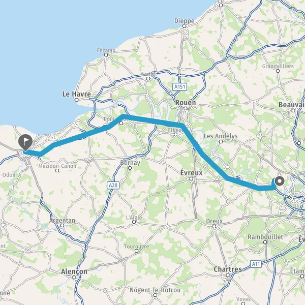 Prendre à droite et rejoindre A13 E5. Continuer sur 11 kilomètres