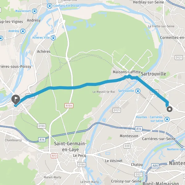| Distance en voiture | 12,3 km à 21,6 km |