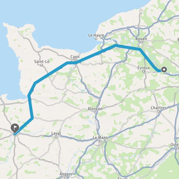 Prendre à droite et rejoindre A84 E401. Continuer sur 165 kilomètres