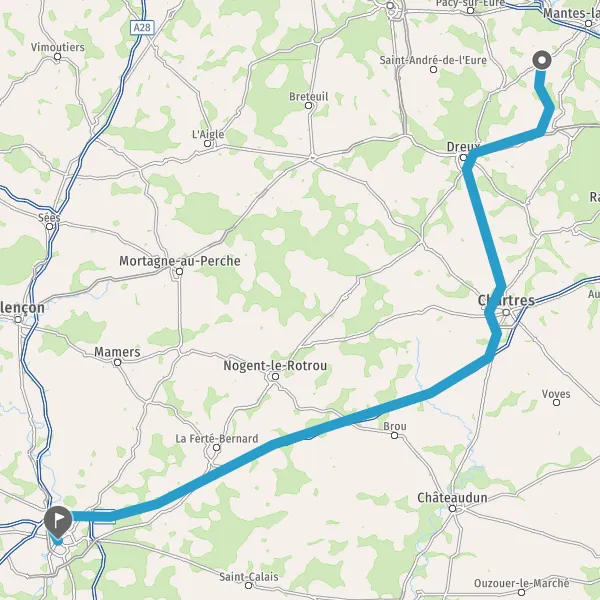 Au rond-point, prendre la 2ème sortie sur N154 (Route de Chartres) et continuer sur 27 kilomètres