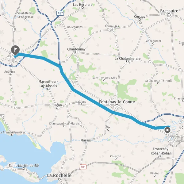 Au rond-point, prendre la 2ème sortie sur D148 (Route de Fontenay-le-Comte) et continuer sur 3,5 kilomètres
