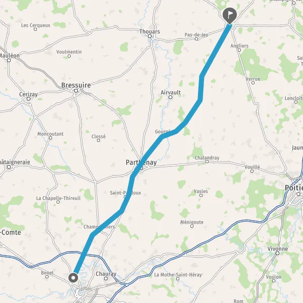 Au rond-point, prendre la 2ème sortie sur D134 (Route de Gourgé) et continuer sur 9,1 kilomètres