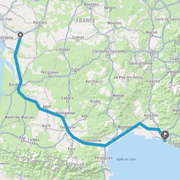 Prendre à gauche et rejoindre A62 E72. Continuer sur 224 kilomètres