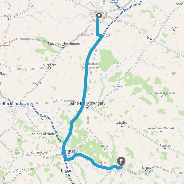 Au rond-point, prendre la 2ème sortie sur D106 (Route de Chizé) et continuer sur 14 kilomètres