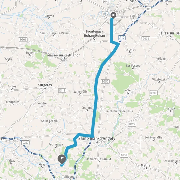 Tourner à droite sur D119 (Rue de Saint-Savinien) et continuer sur 5,8 kilomètres