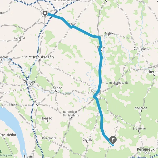 Au rond-point, prendre la 2ème sortie sur D709 D708 (Route d'Angoulême) et continuer sur 550 mètres