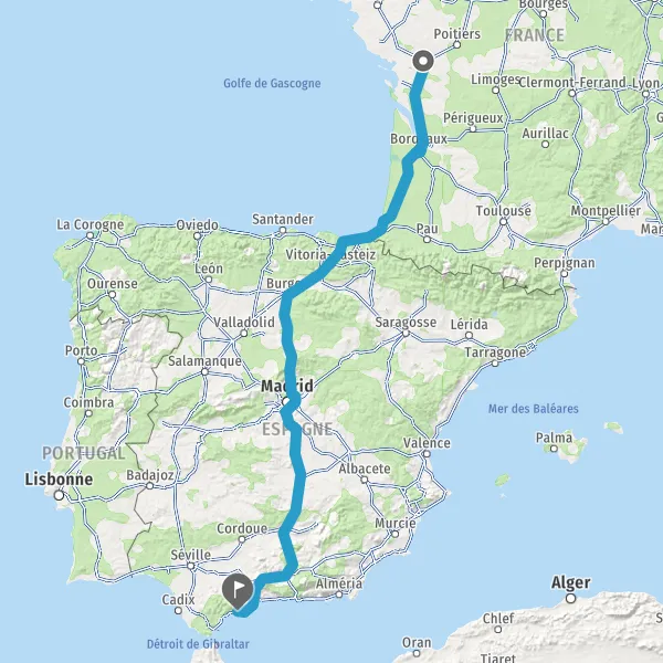 Prendre à droite et rejoindre A63. Continuer sur 205 kilomètres